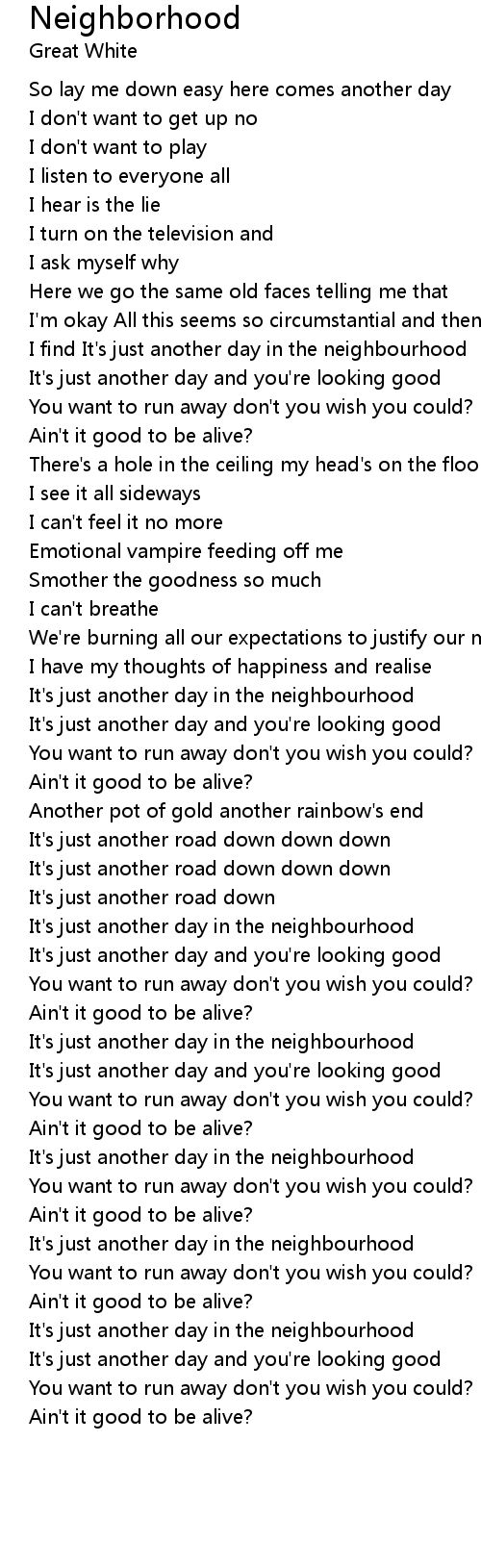 I find It's just another day in the neighbourhood |