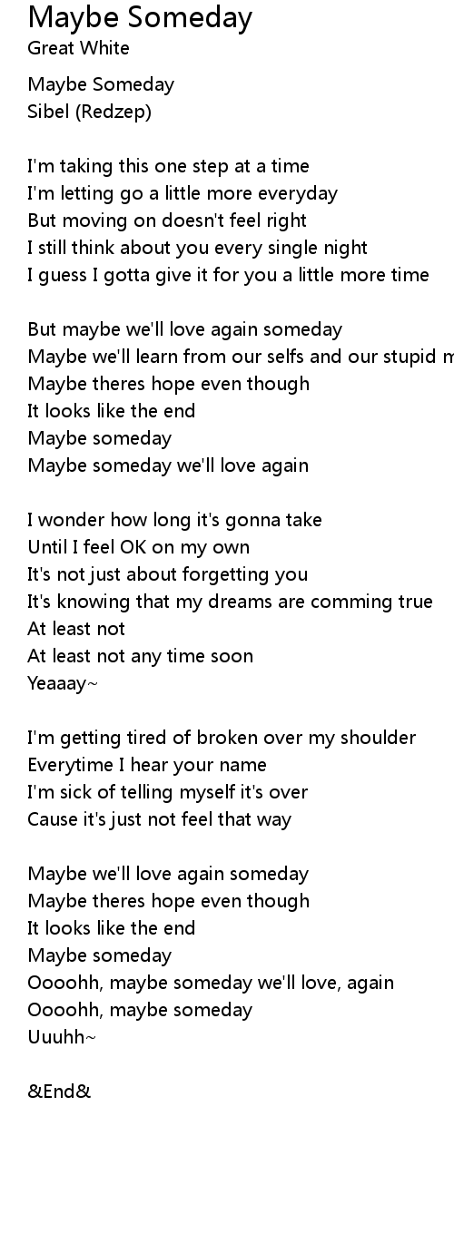 Maybe we'll learn from our selfs and our stupid mistakes |