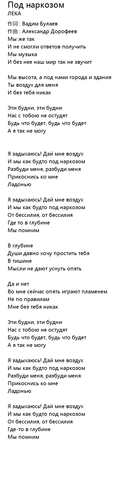 Под наркозом 歌词