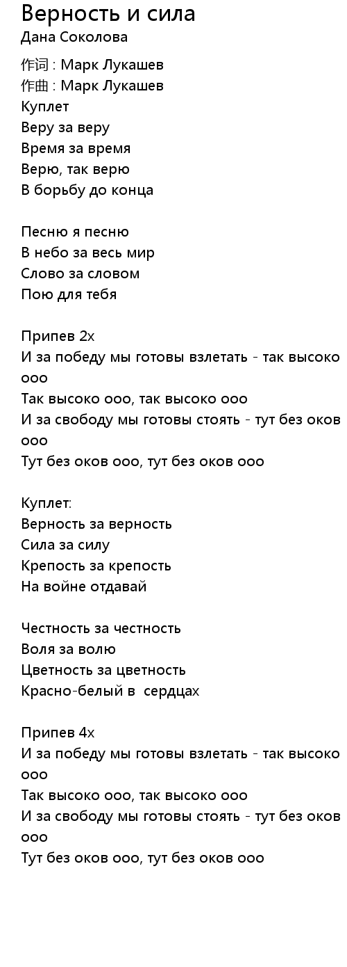 Верность и сила 歌词