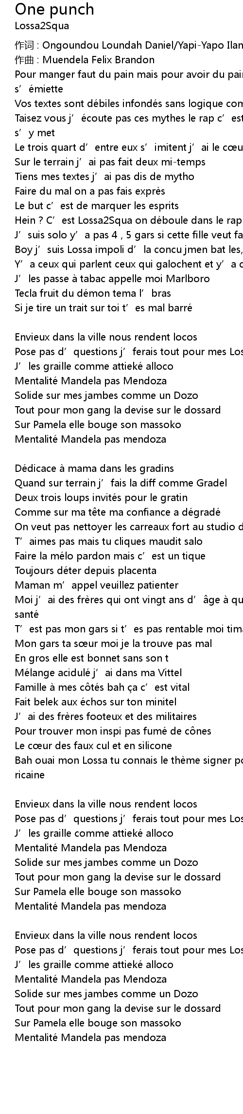 | 作词 : Ongoundou Loundah Daniel/Yapi-Yapo Ilan | |