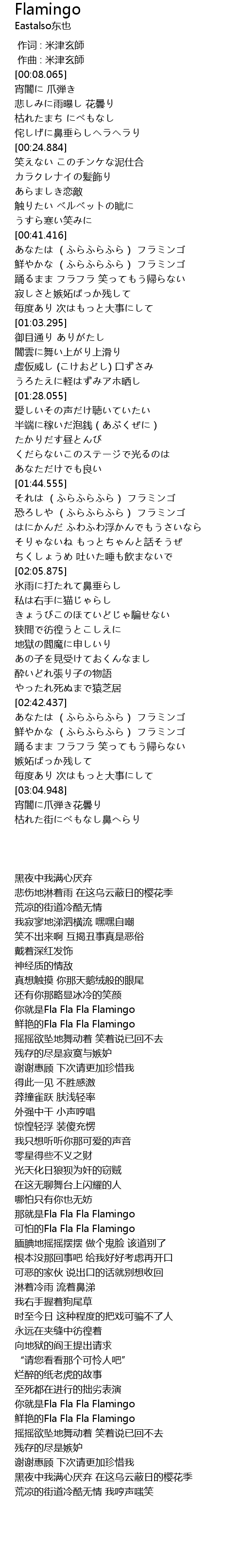 | [00:45.161] | 鲜艳的Fla Fla Fla Flamingo |