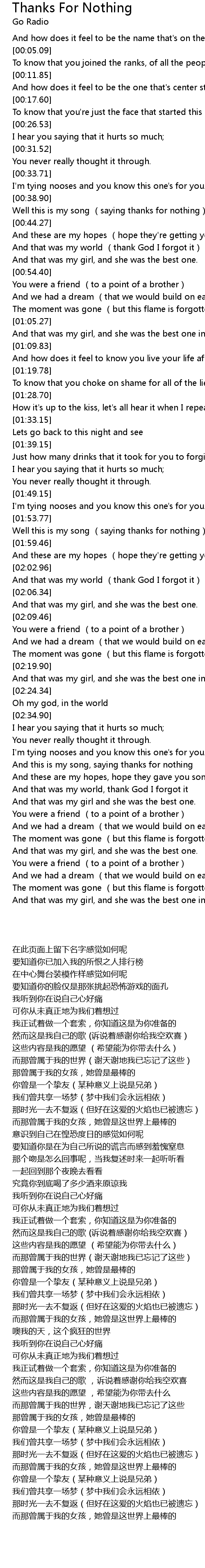 | [00:41.65] | Well this is my song saying thanks for nothing |