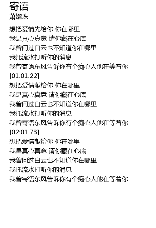| [00:40.61] | 我托流水打听你的消息 |