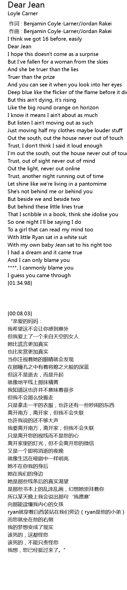 | [00:11.09] | Dear Jean |