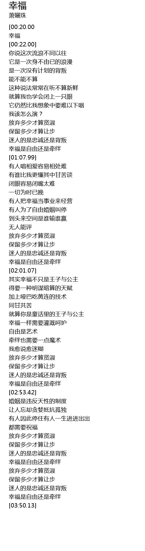 | [03:20.56] | xìng fú shì zì yóu hái shì qiān bàn |