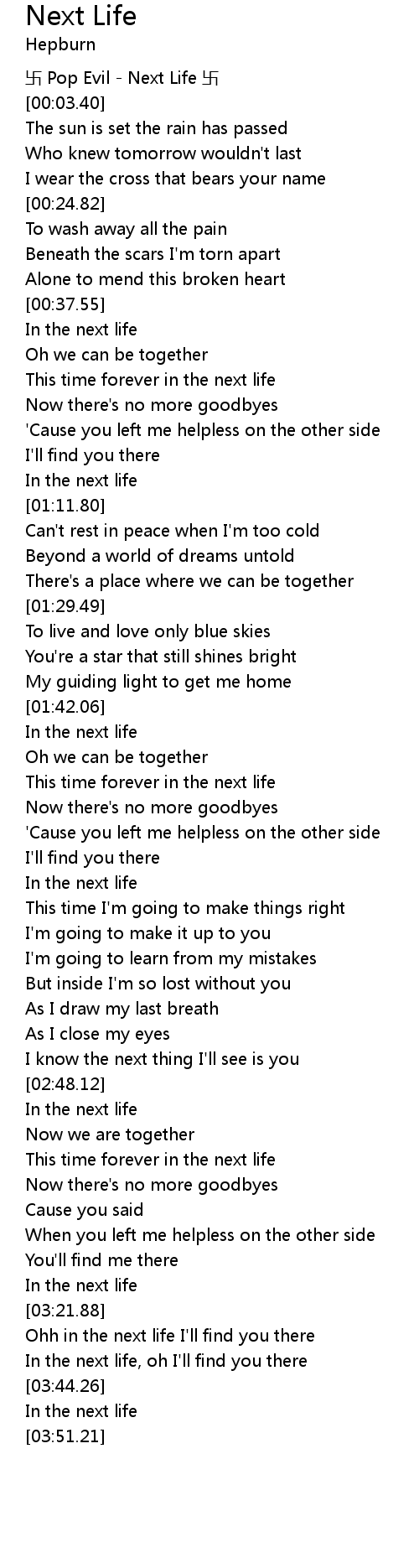 | [03:23.60] | Ohh in the next life I' ll find you there |