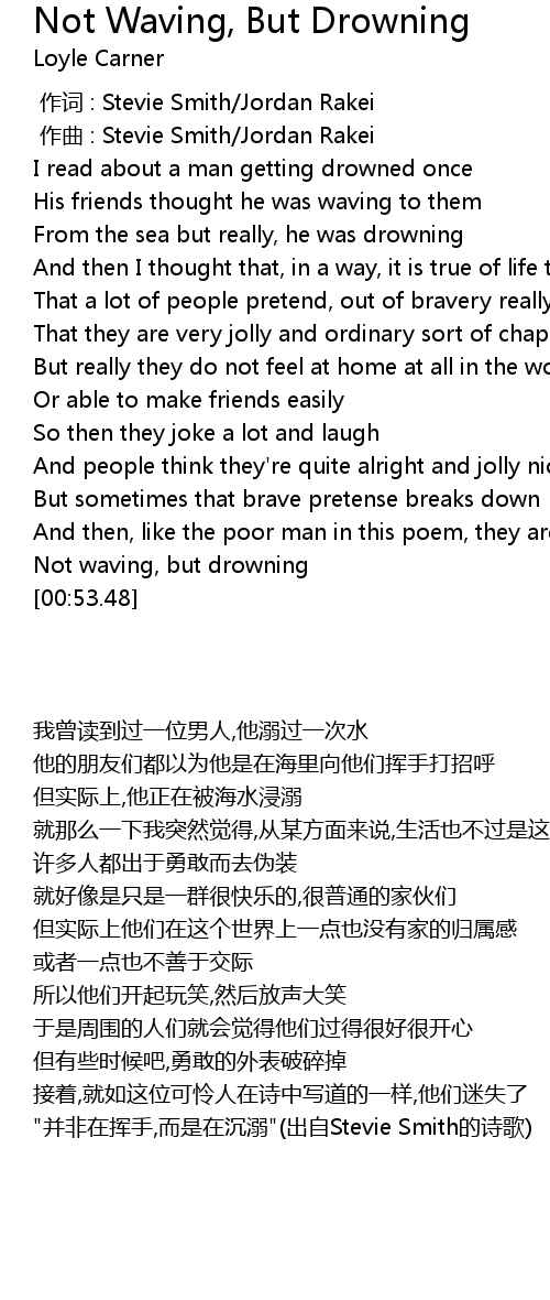 | [00:50.26] | Not waving, but drowning |