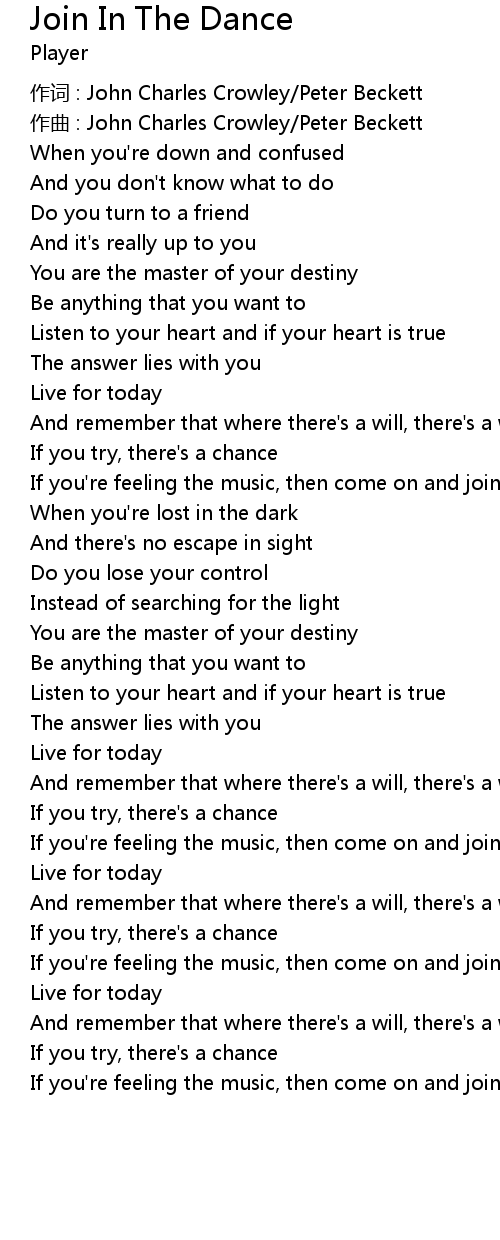| 作词 : John Charles Crowley/Peter Beckett | |