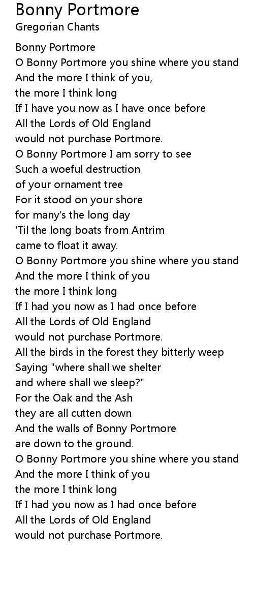 And the walls of Bonny Portmore |