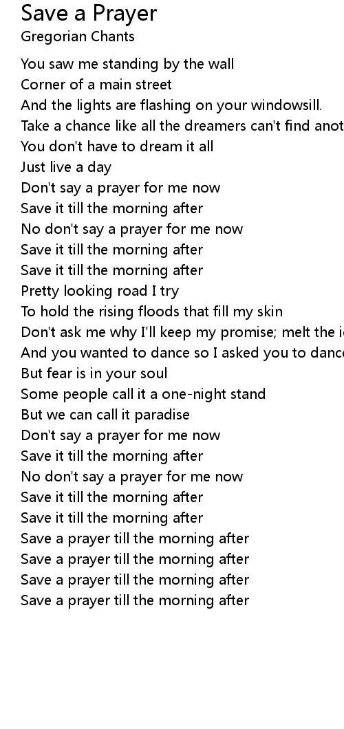 Save a prayer till the morning after |