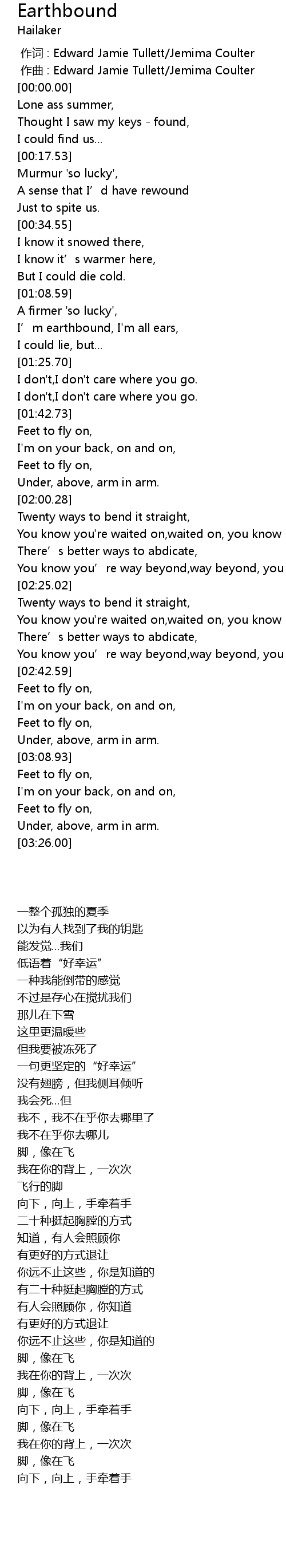 | [00:00.000] | zuo qu : Edward Jamie Tullett Jemima Coulter |