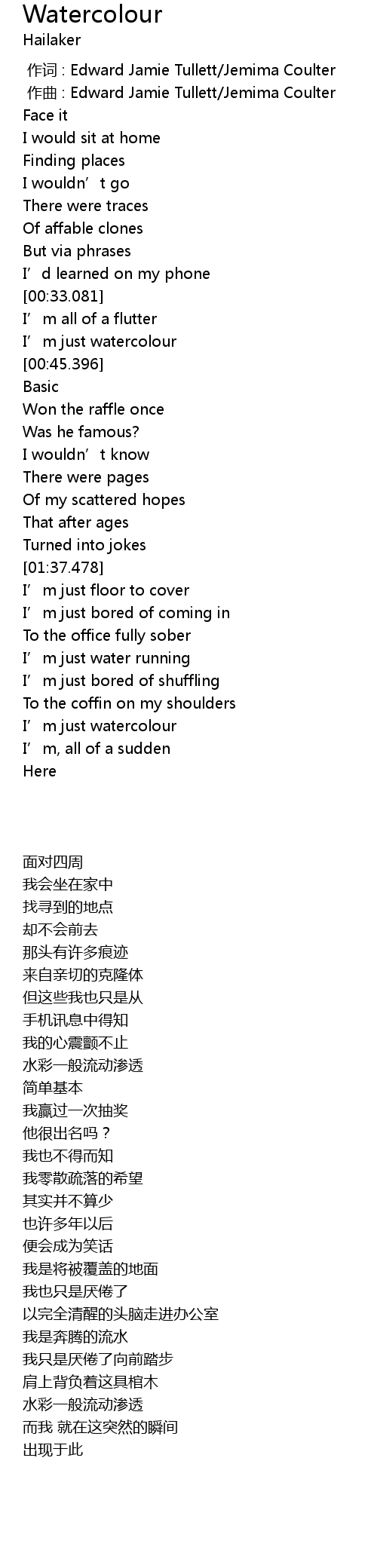 | [00:00.163] | zuò qǔ : Edward Jamie Tullett Jemima Coulter |