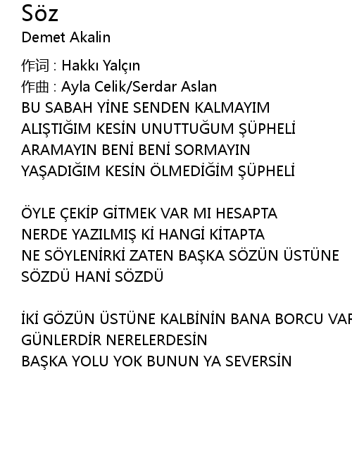 | 歌曲 | Söz |