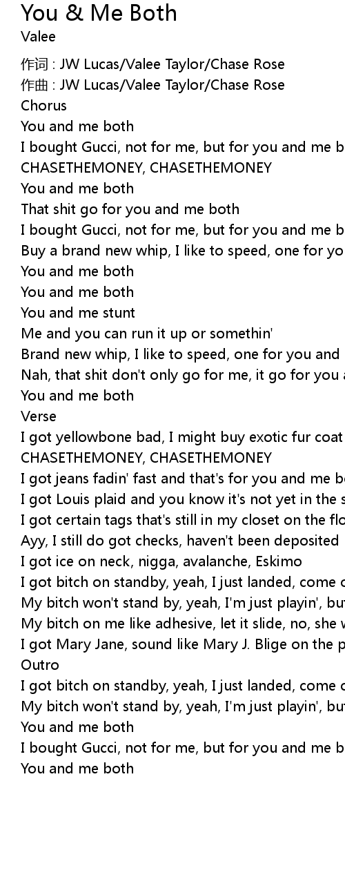 | I bought Gucci, not for me, but for you and me both | |