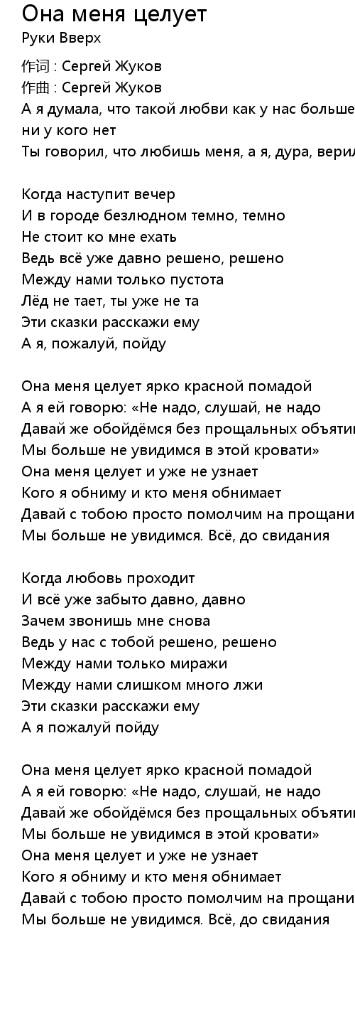 Она меня целует 歌词