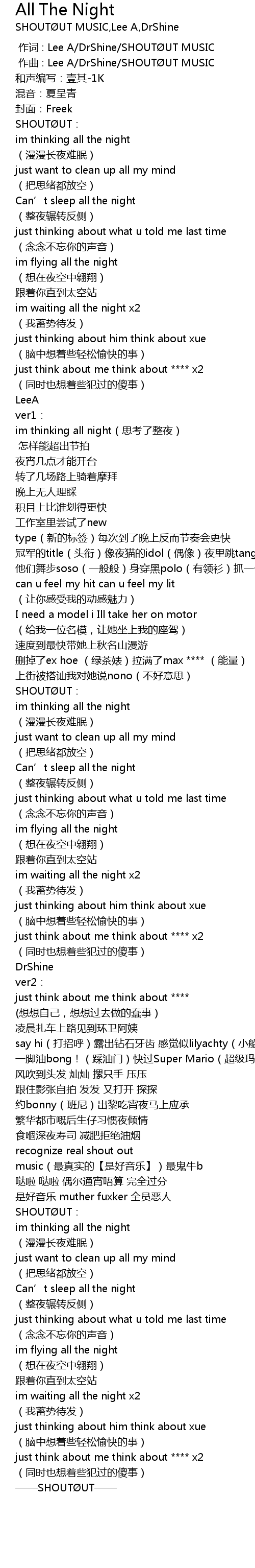 | [00:00.513] | zuò qǔ : Lee A DrShine SHOUT UT MUSIC |