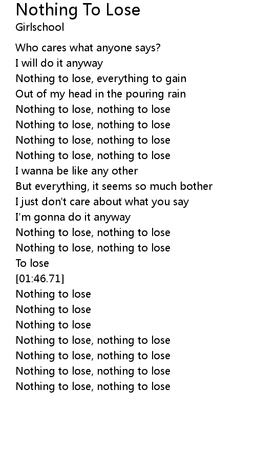 Nothing to lose, nothing to lose |