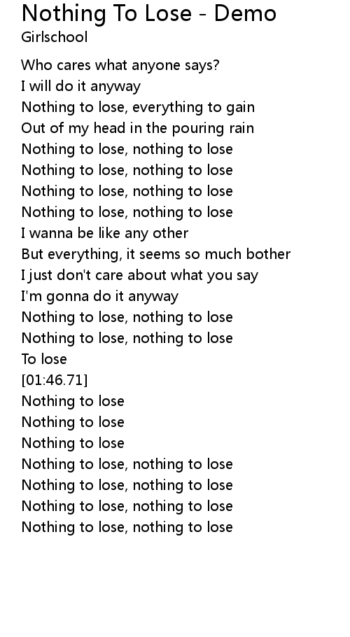 Nothing to lose, nothing to lose |