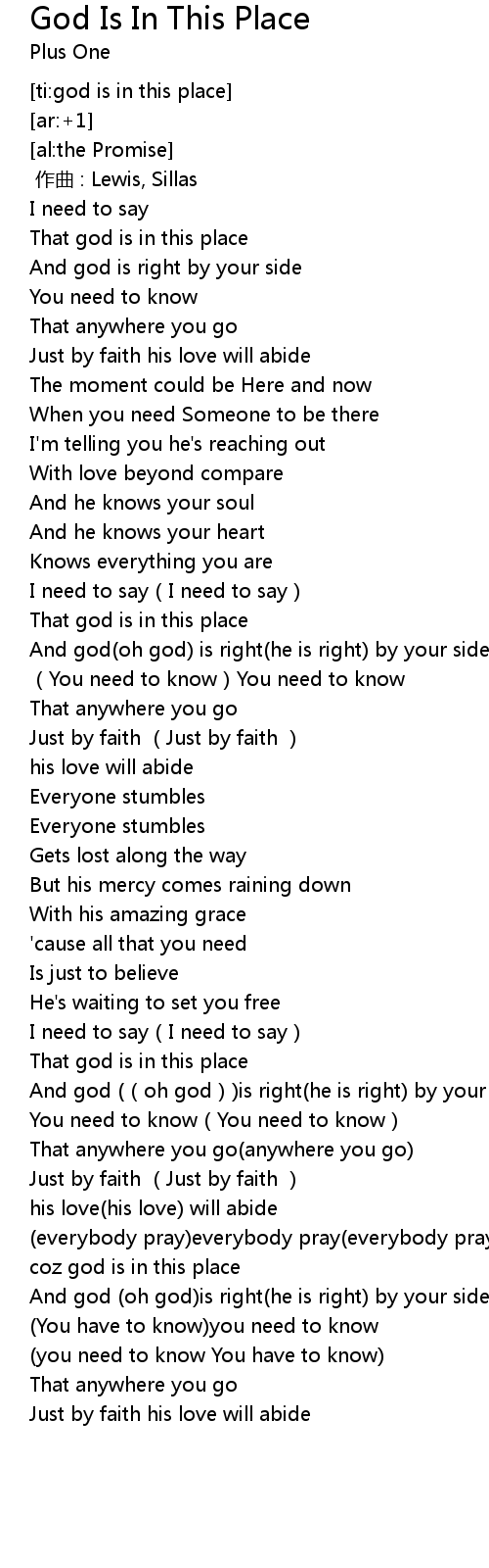 | [03:16.44] | And god (oh god)is right(he is right) by your side |