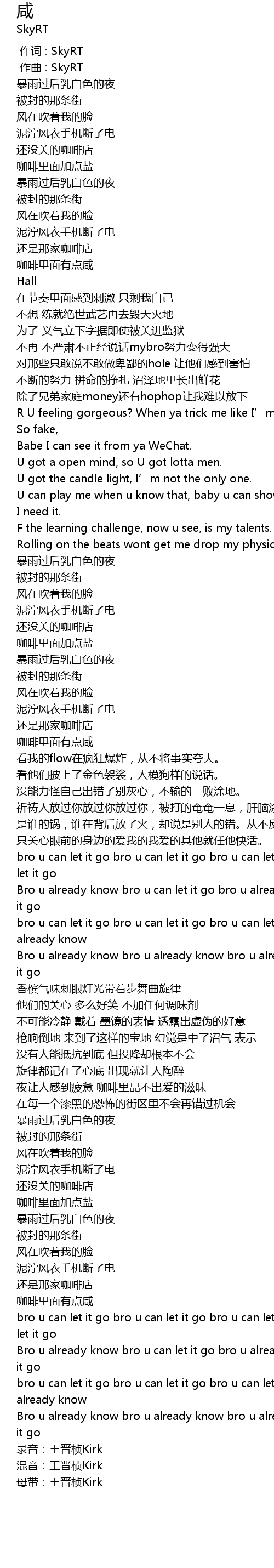 | [02:15.44] | bro u can let it go bro u can let it go bro u can let it bro bro u can let it go |