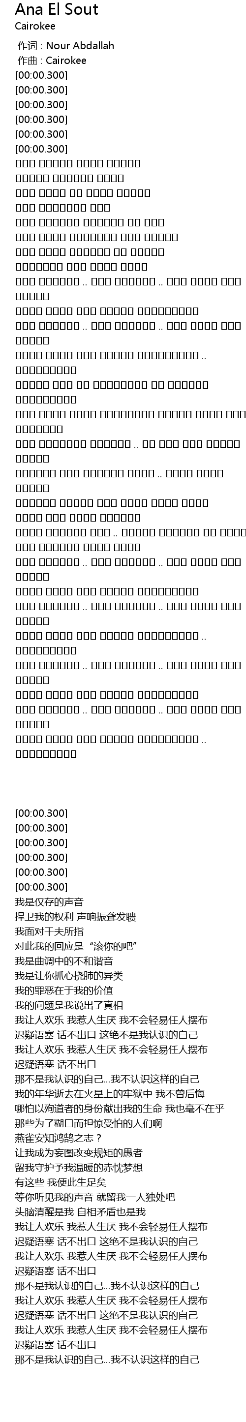 | [00:00.000] | zuò cí : Nour Abdallah |