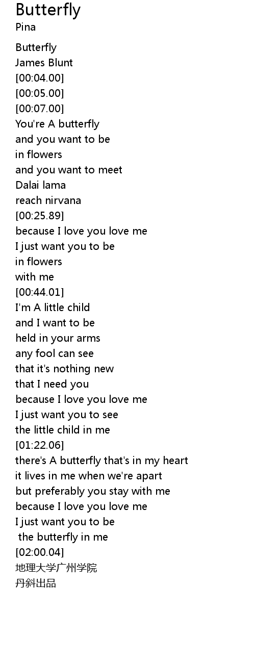 | [00:10.17] | You' re A butterfly |