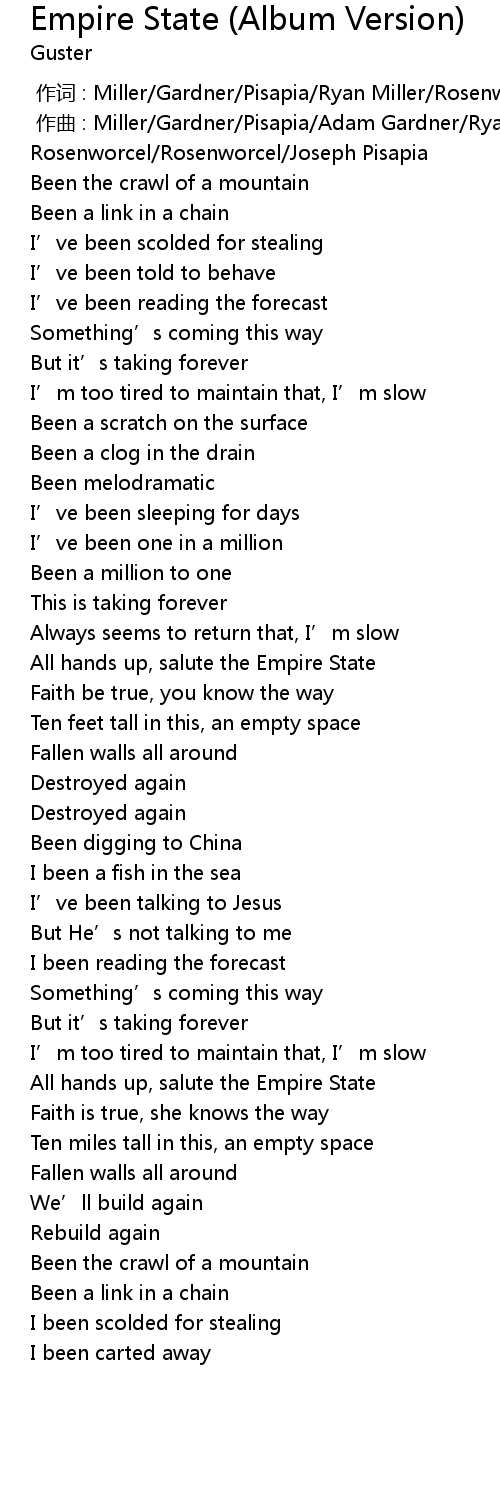 | [03:20.00] | All hands up, salute the Empire State |