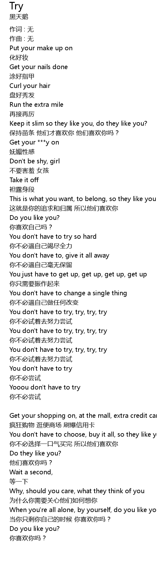 | nǐ bù bì shì zhe qù nǔ lì cháng shì | |