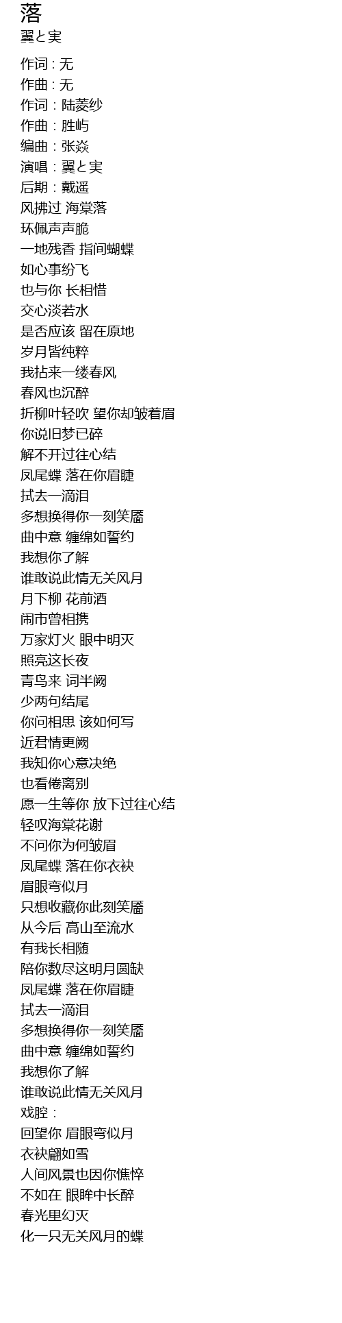 | 歌曲 | 落 |