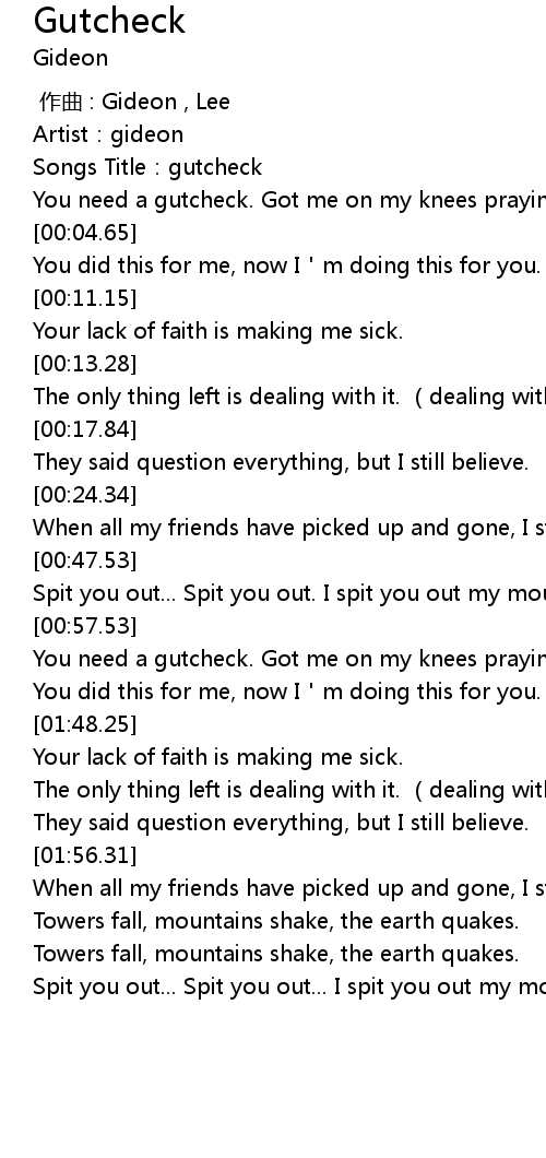 | [00:00.93] | Songs Title: gutcheck |