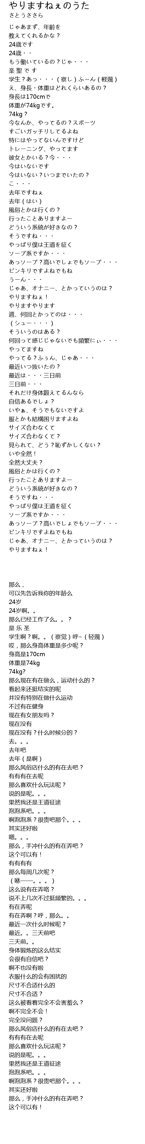 じゃあ、オナニー、とかっていうのは? |