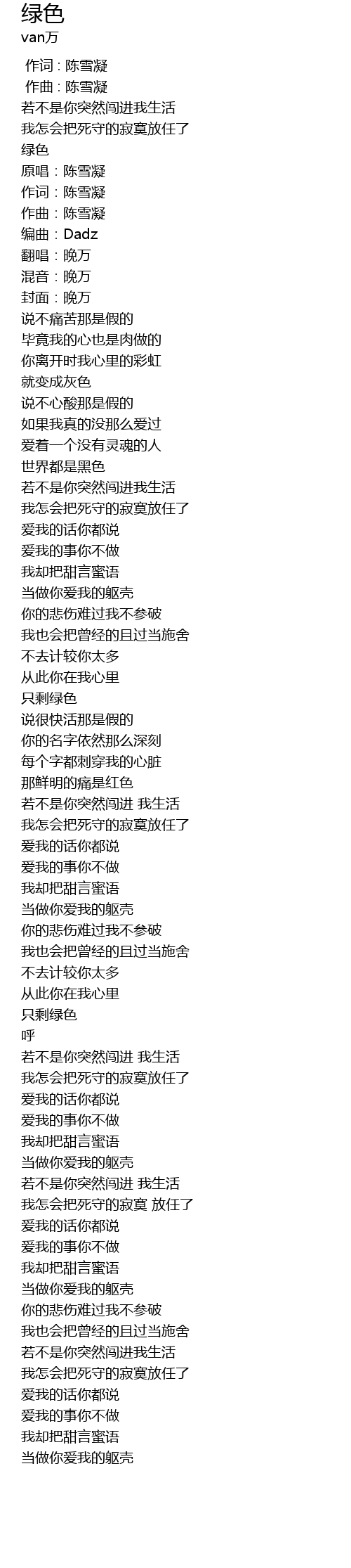 | [00:00.000] | 作词 : 陈雪凝 |