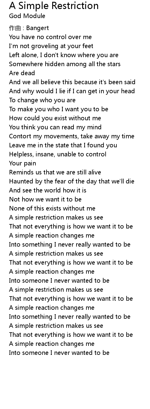 | 歌曲 | A Simple Restriction |