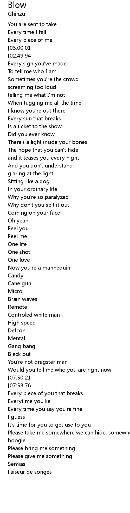 | [07:34.94] | Every time you say you're fine |