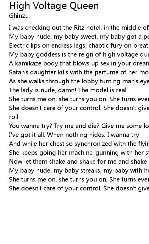 | Electric lips on endless legs, chaotic fury on breathless heels | |