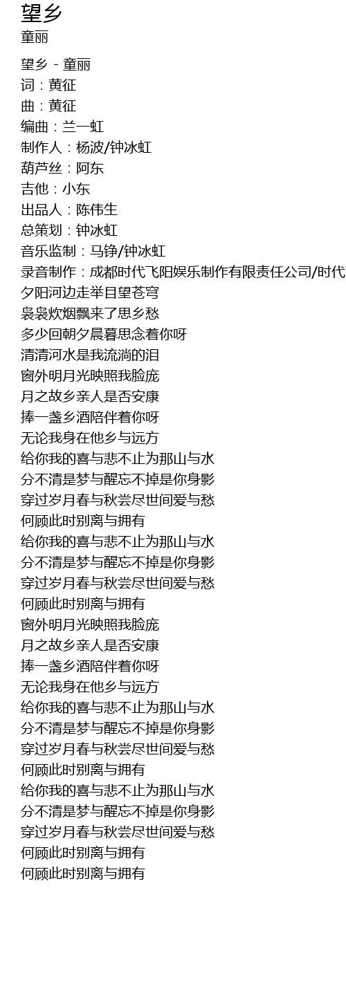 | [00:03.66] | 望乡 - 童丽 |