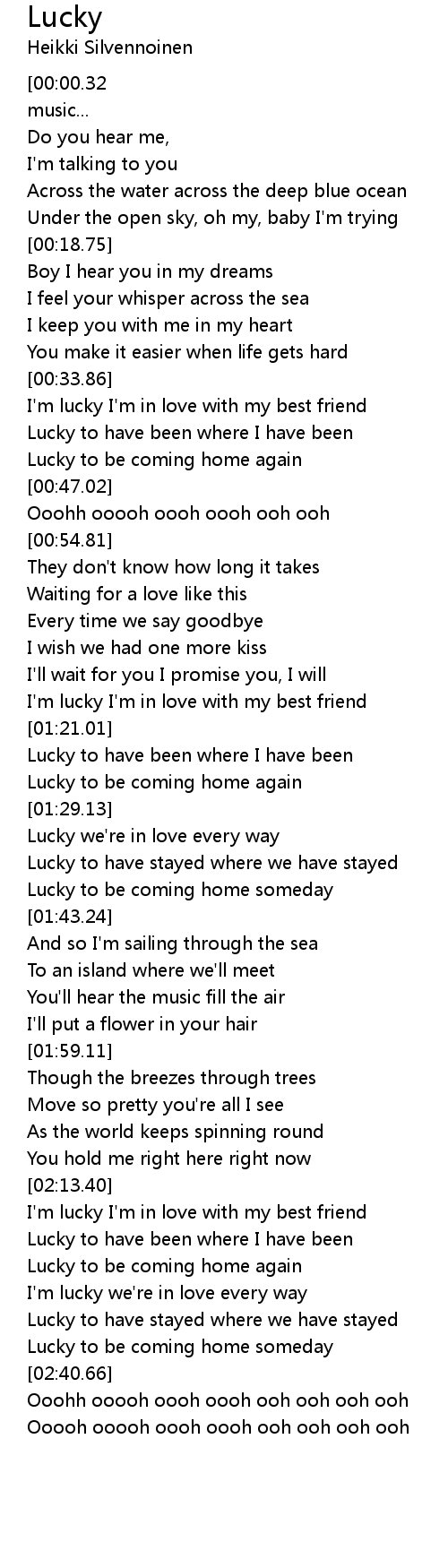 | [00:34.57] | I' m lucky I' m in love with my best friend |