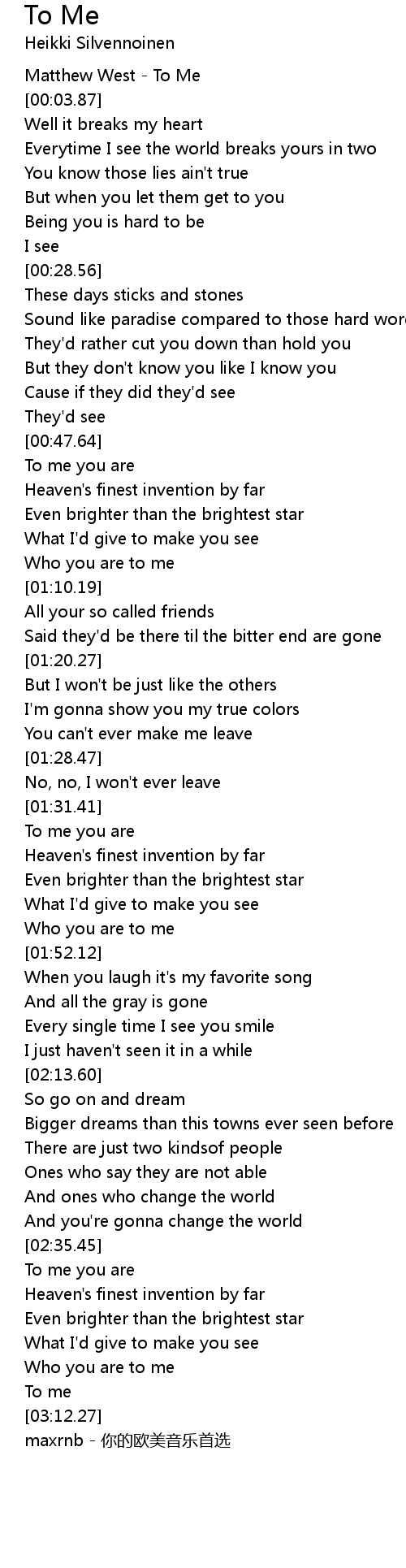 | [03:14.65] | maxrnb - 你的欧美音乐首选 |