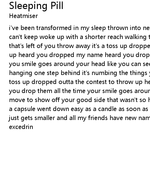 i've been transformed in my sleep thrown into next week i've got something i can't keep woke up with a shorter reach walking thru a concussion and the dosage that's left of you throw away it's a toss up dropped outta the contest to throw up heard you dropped my name heard you dropped it all the time time time time you smile goes around your head like you can see from behind you're always hanging one step behind it's numbing the things you don't say throw away it's a toss up dropped outta the contest to throw up heard you dropped my name heard you drop them all the time your smile goes around your head so you don't have to move to show off your good side that wasn't so hard to swallow went down easy as a capsule went down easy as a candle as soon as you got a new angle this town just gets smaller and all my friends have new names like tylenol demerol anacin excedrin |