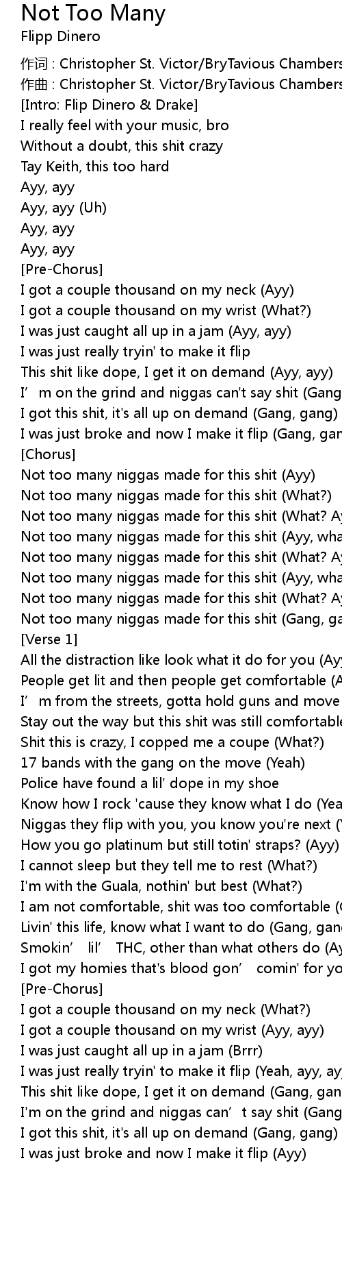 | 歌曲 | Not Too Many |