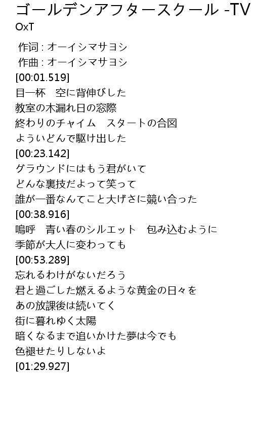 | [00:15.371] | 終わりのチャイム スタートの合図 |