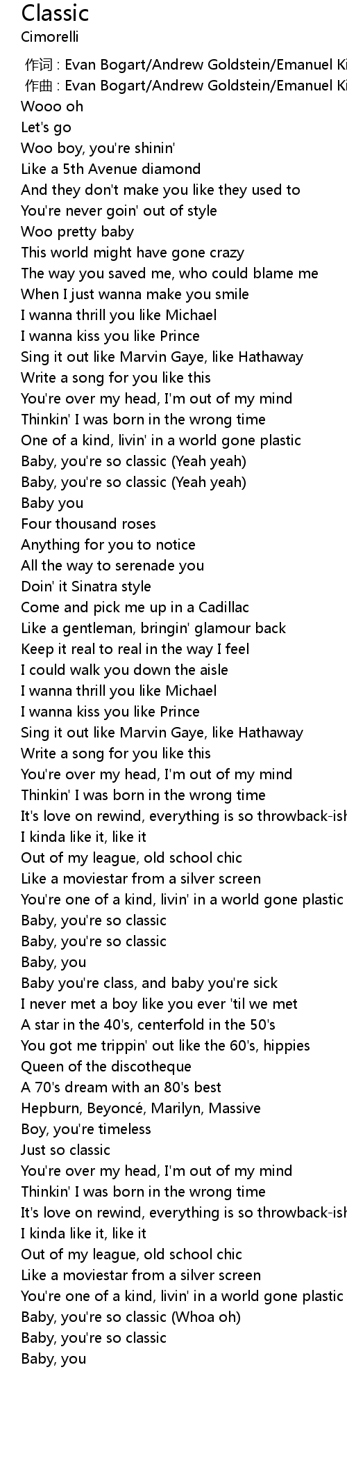 | [00:47.000] | Baby, you're so classic (Yeah yeah) |