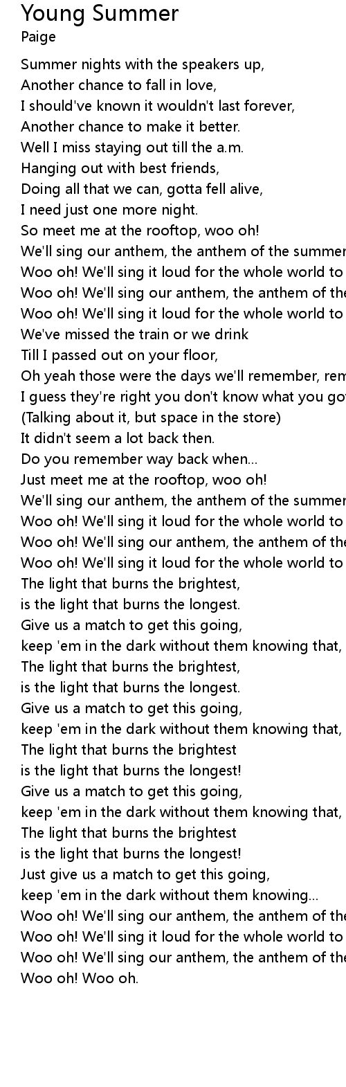 Woo oh! We'll sing our anthem, the anthem of the summer and |