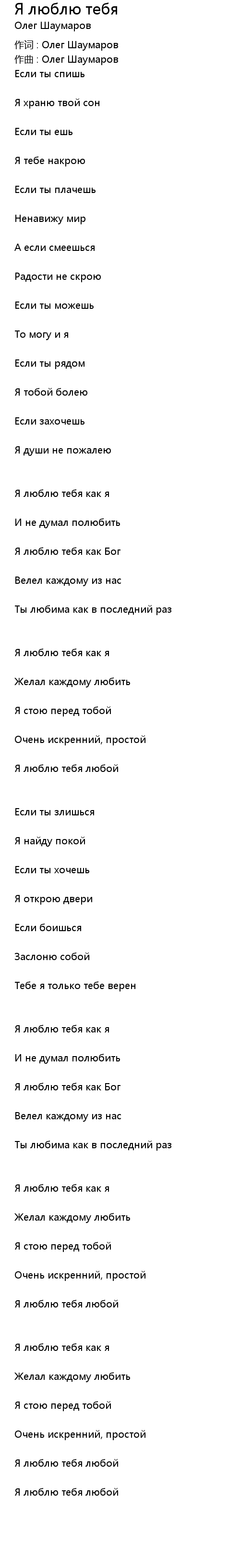 | 作词 : Олег Шаумаров | |