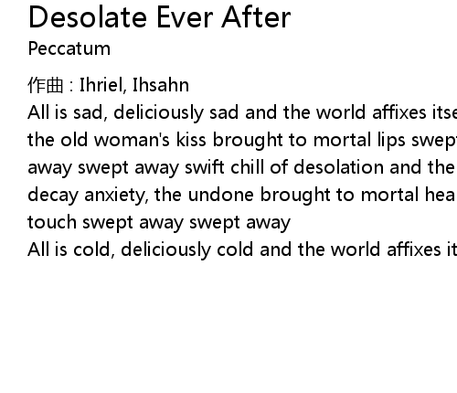 | All is sad, deliciously sad and the world affixes itself to the sorrow quietly, the old woman's kiss brought to mortal lips swept away swept away the kiss swept away swept away swift chill of desolation and the sadness affixes itself to decay anxiety, the undone brought to mortal hearts swept away swept away her touch swept away swept away | |