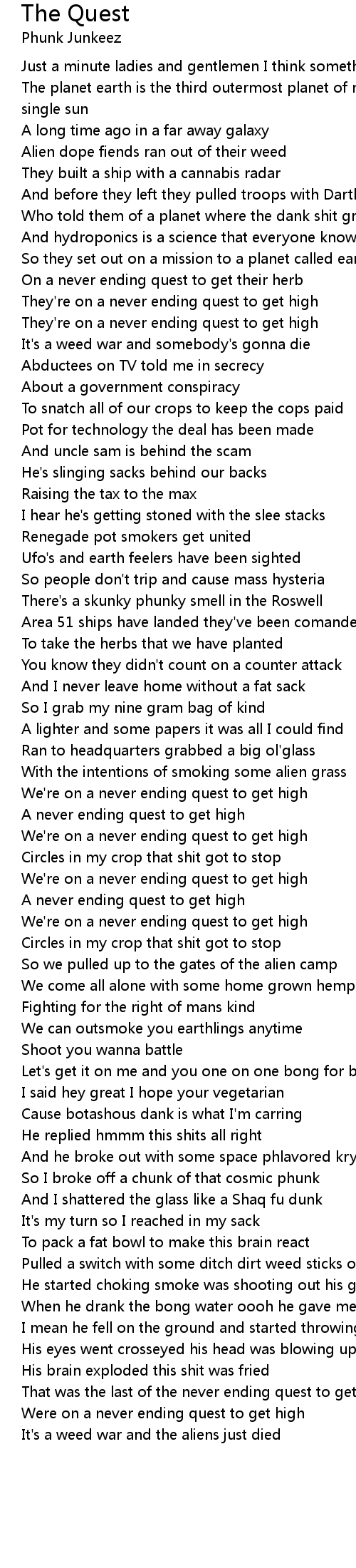 That was the last of the never ending quest to get high |