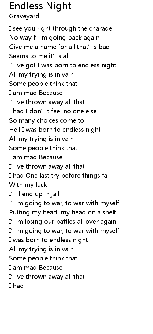 | I' ve got I was born to endless night | |