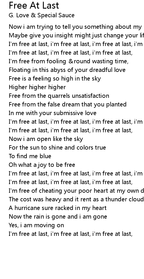 | I' m free at last, i' m free at last, i' m free at last, i' m free at last, | |