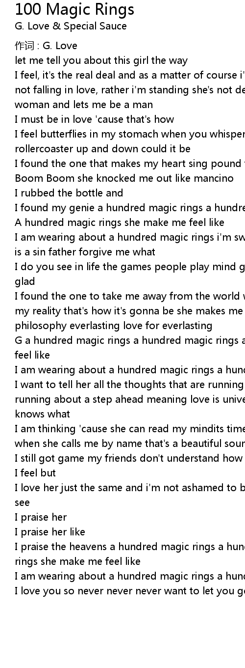 | I praise the heavens a hundred magic rings a hundred magic rings a hundred magic rings she make me feel like | |